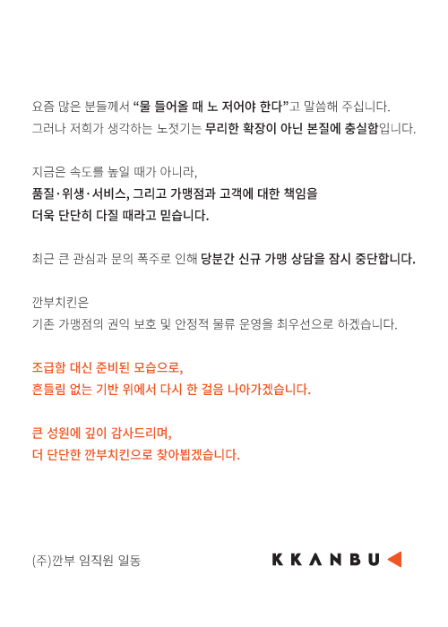 신규 가맹 상담을 잠시 중단합니다.